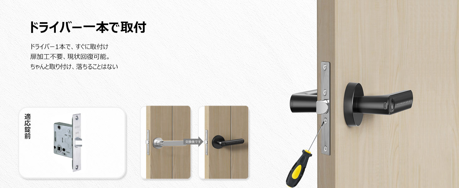 スマートロックに対して「設置が難しい」という課題がある中、H10は既存の鍵穴を活用する設計により、特別な工事を必要とせず、短時間での設置が可能です。