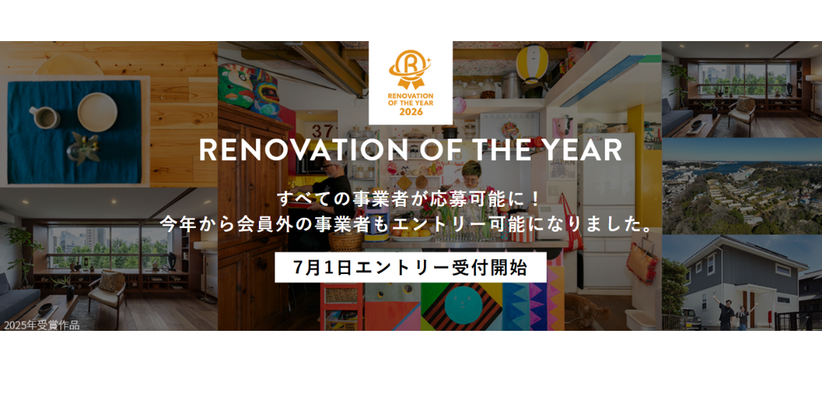 一般社団法人リノベーション協議会(東京都中央区・理事長:山本卓也)は、1年を代表するリノベーション作品を選出、表彰するアワード「リノベーション・オブ・ザ・イヤー2026」を今年も開催いたします。