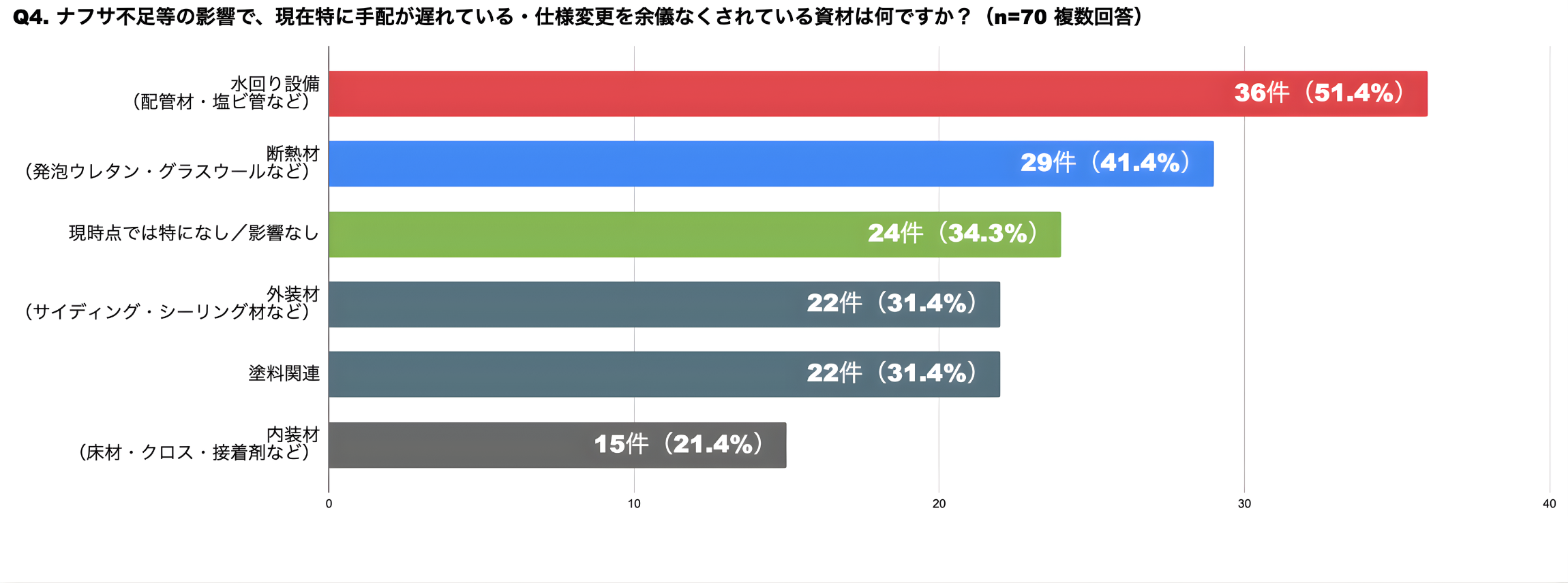 Q4. ナフサ不足等の影響で、現在特に手配が遅れている・仕様変更を余儀なくされている資材は何ですか?(複数選択)