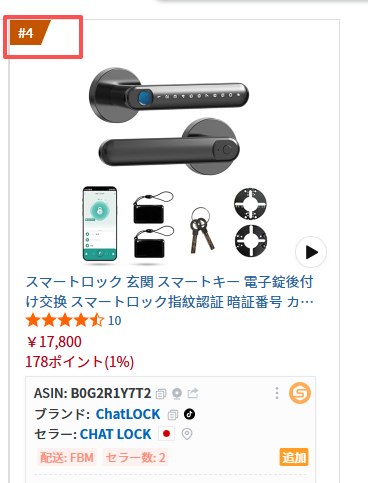 チャットロック株式会社(以下、Chatlock)はこのたび、同社が展開するスマートロック「H10」が、Amazonにおける壳れ筋ランキングの一つである「BestSellers in Deadbolts」に選出されたことを発表しました。