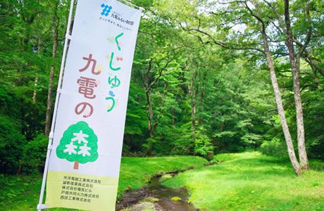 九州電力が保有する社有林(「くじゅう九電の森」など)は、そのほとんどで森林管理認証(FM認証)を取得しています。本取組みでは、同社有林にて九州林産により伐採されたFSC®認証材を建築資材として活用します。