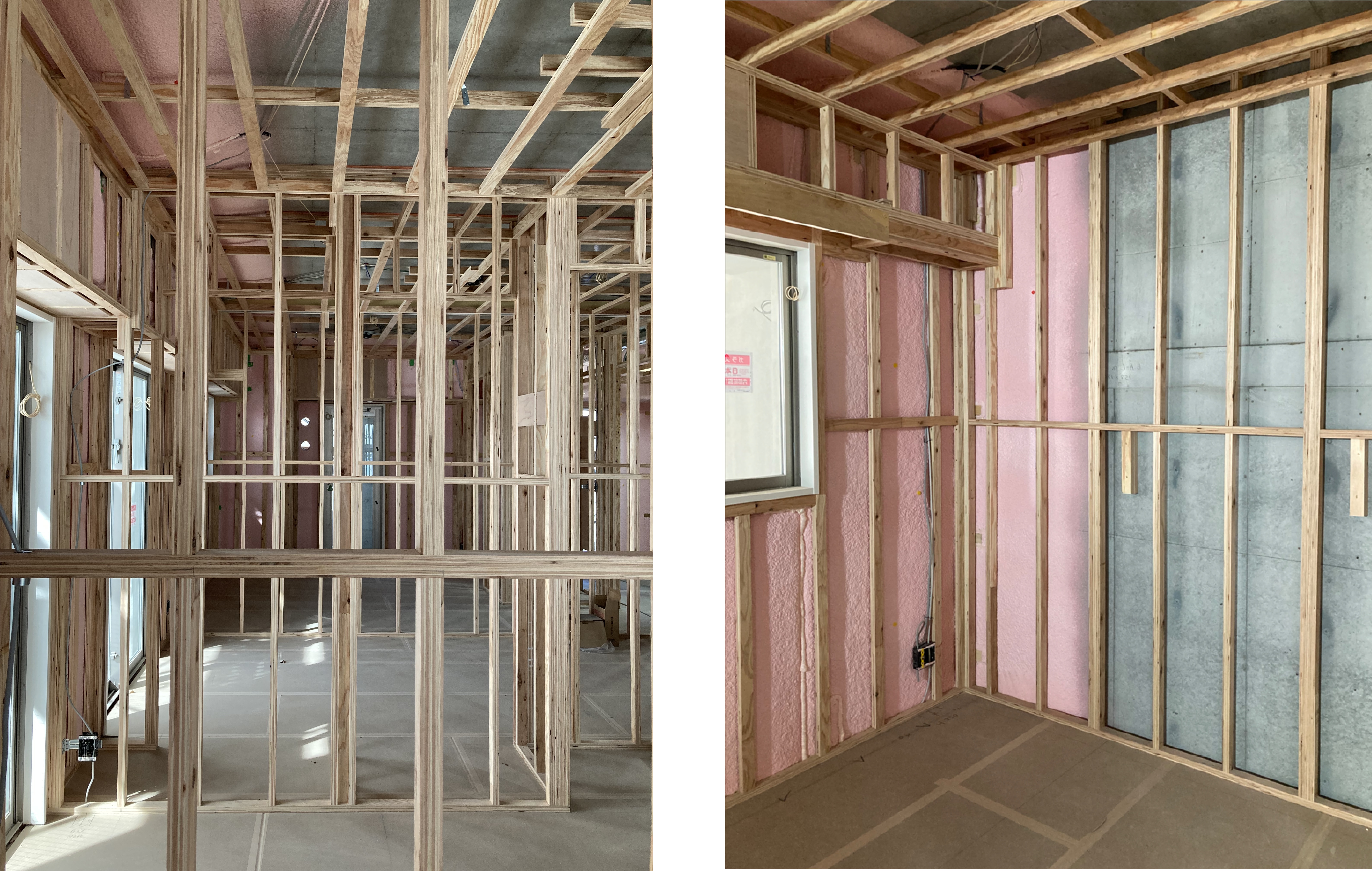 九州林産により伐採・運搬された木材は、本取組みに協力いただく企業により製材・加工され、木軸LVL(※1)(壁・天井下地)として供給されます。加工・流通の過程では、CoC認証(※2)に基づく管理が行われます。