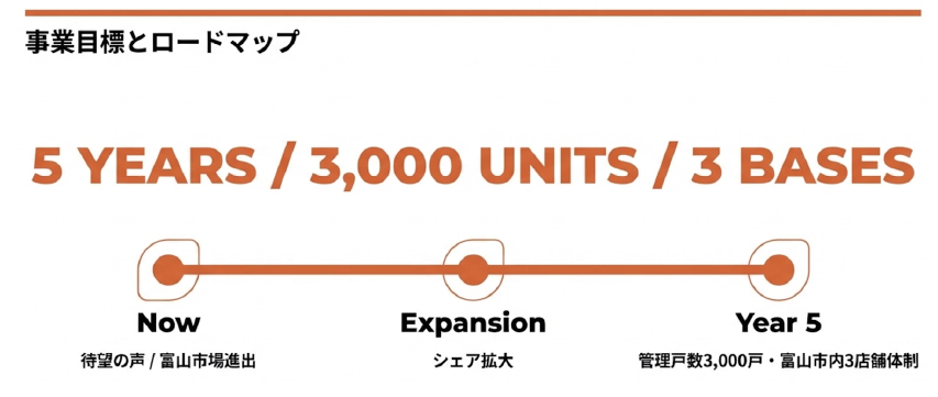 ■ 今後の目標:富山エリアで5年以内に3拠点・管理戸数3,000戸へ