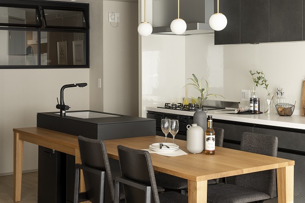 一筆書きの回遊動線と、料理をしない時間にも配慮したキッチンを採用することで、開放感のあるシームレスな空間を実現しました。加えて、生活動線上にある大型収納により、家事・育児・仕事の効率化を図っています。また、家族が自然と集まる「小上がり」、子どもの成長やライフスタイルの変化に応じて空間を仕切ることができる洋室も備え、家族の「今」と「これから」の暮らしに寄り添う住まいとなっています。