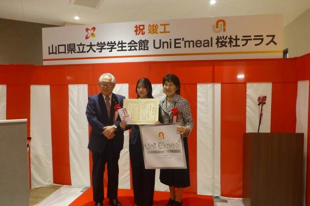 UniLife(ユニライフ)のブランドで全国の学生マンションの企画開発・仲介斡旋・運営管理までをトータルで行う株式会社ジェイ・エス・ビー(本社:京都府京都市、代表取締役社長:森 高広 以下、当社)は、公立大学法人山口県立大学(以下、山口県立大学)の南キャンパス(山口市桜畠)構内にて、食事付き学生マンション「山口県立大学学生会館 Uni E’meal 桜杜テラス(ユニエミールサクラモリテラス)」の運営を4月1日より開始しました。開設に先立ち山口県立大学と共に3月6日に開催した竣工式では、建物名称の学内公募で選ばれた受賞者への表彰も執り行われました。