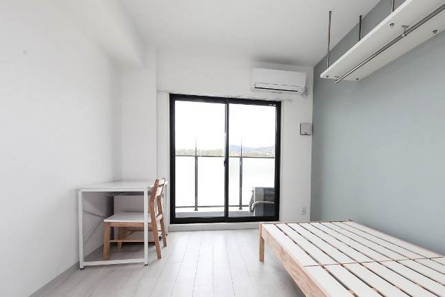 個室はバス・トイレが設置されたプライベート重視の完全個室となっています。室内にはベッド、デスク、チェア、クローゼット、洗濯機、冷蔵庫、電子レンジといった家具家電を備え付け、引越しによる手間、時間、費用の負担を減らしています。