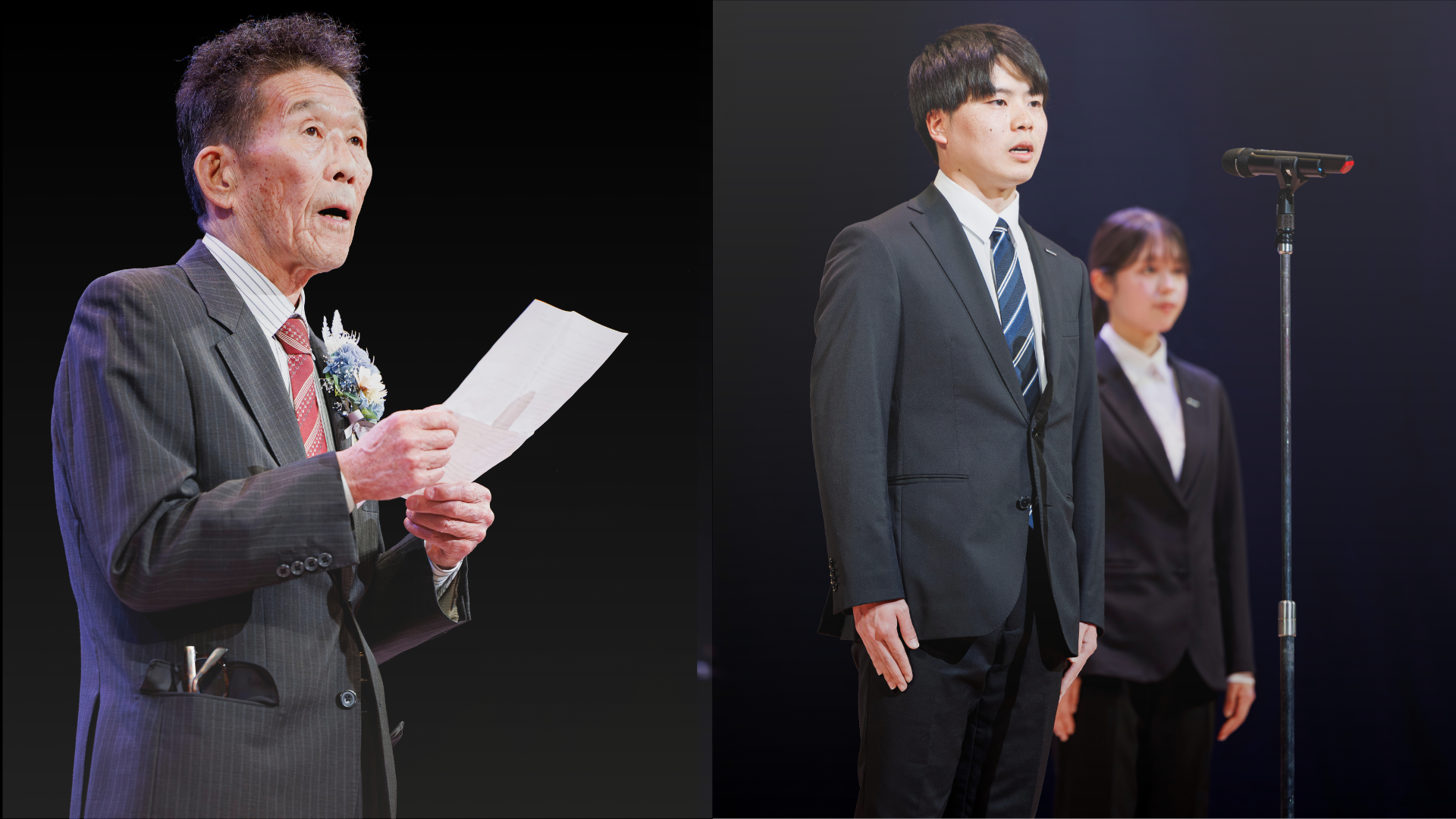 本年の式典テーマは「原点」。変化の激しい時代に合わせた組織改革が進むなか、企業の「原点」である創業者の想いを振り返るオープニング映像から始まり、これまでの歩みを見つめ直すべく原点回帰を掲げました。当日は、高度経済成長期から半世紀にわたり会社を支え続けた50年勤続のベテラン社員と、これから社会人としての第一歩を踏み出す新入社員が同じ舞台に登壇し、世代を超えて互いの功績と未来への決意を讃え合いました。
