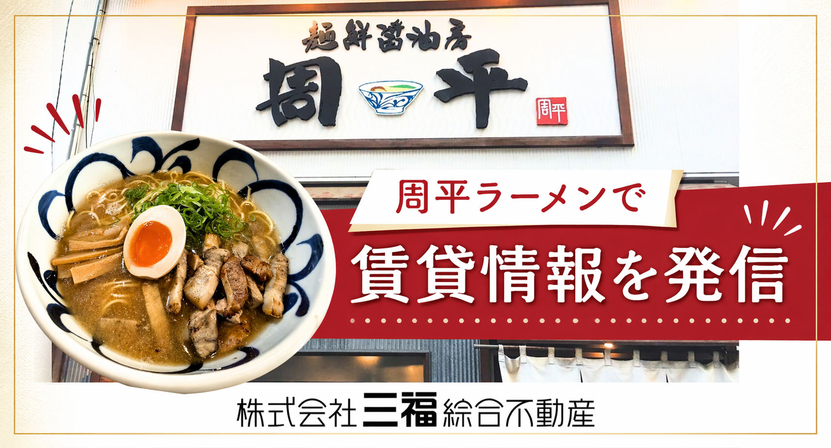 三福綜合不動産(愛媛県松山市)は、地域の飲食店を通じた住まい情報発信の取り組みとして、松山市の人気ラーメン店「周平」にポケットティッシュの設置を開始しました。来店者に向けて、初期費用を抑えたお得な賃貸情報を提供します。