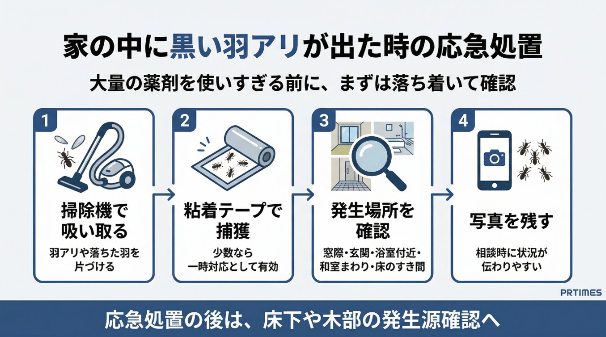 Q. 家の中に黒い羽アリが出たら、まず何をすればいいですか?