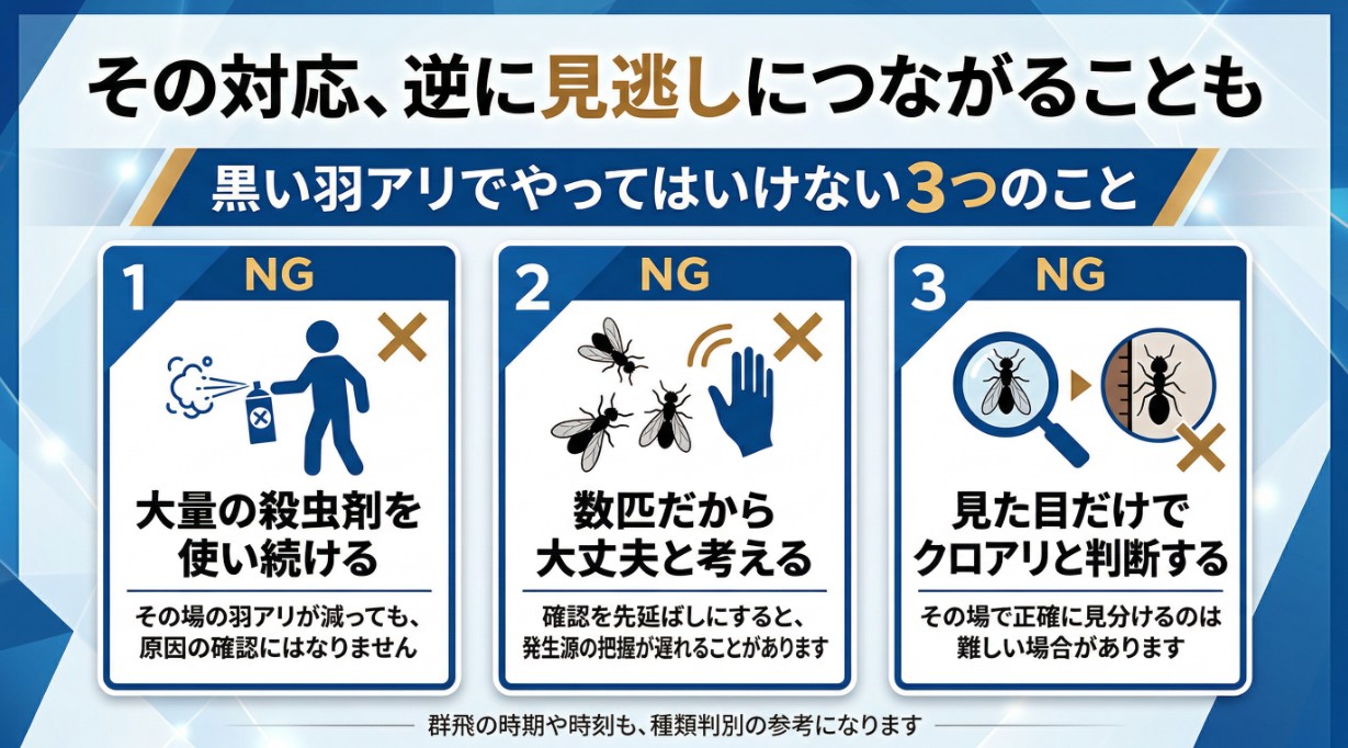 ■黒い羽アリを放置すると、どのようなリスクがあるのか
