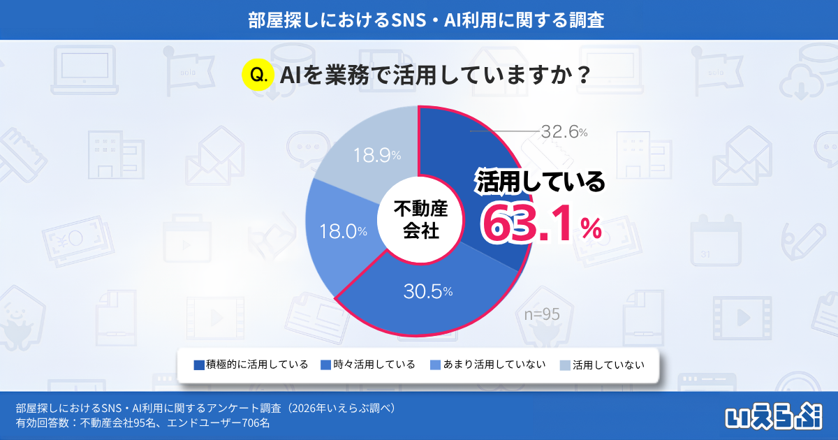 これらの結果から、エンドユーザーの部屋探しにおけるAI利用はまだ限定的である一方、不動産会社では業務での活用が広がっていることがわかります。