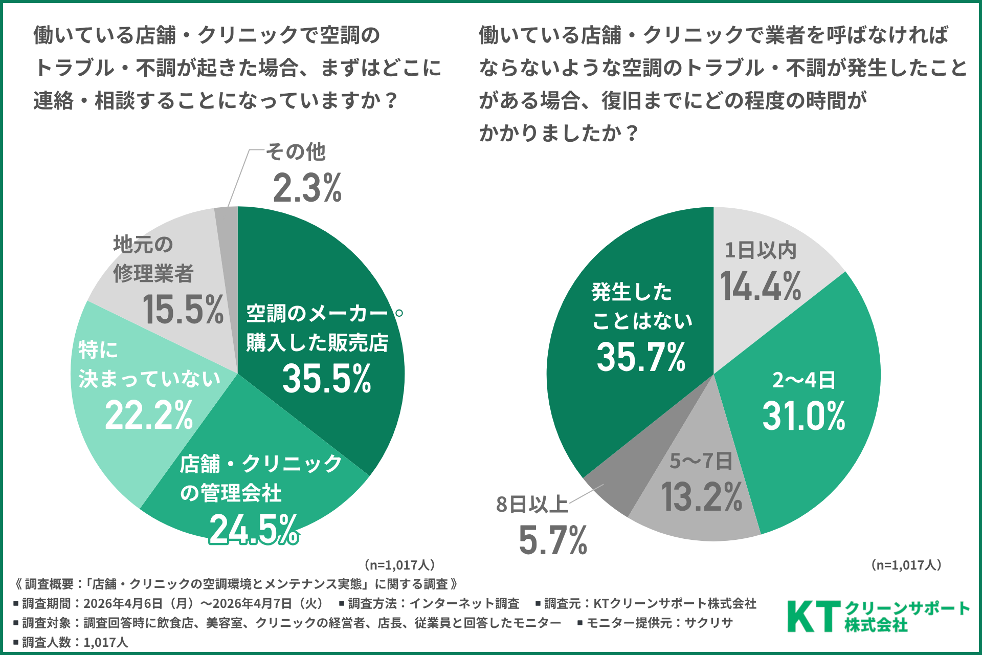 そこで今回、KTクリーンサポート株式会社(https://www.kt-clean-inc.co.jp/)は、飲食店、美容室、クリニックの経営者、店長、従業員を対象に「店舗・クリニックの空調環境とメンテナンス実態」に関する調査を行いました。