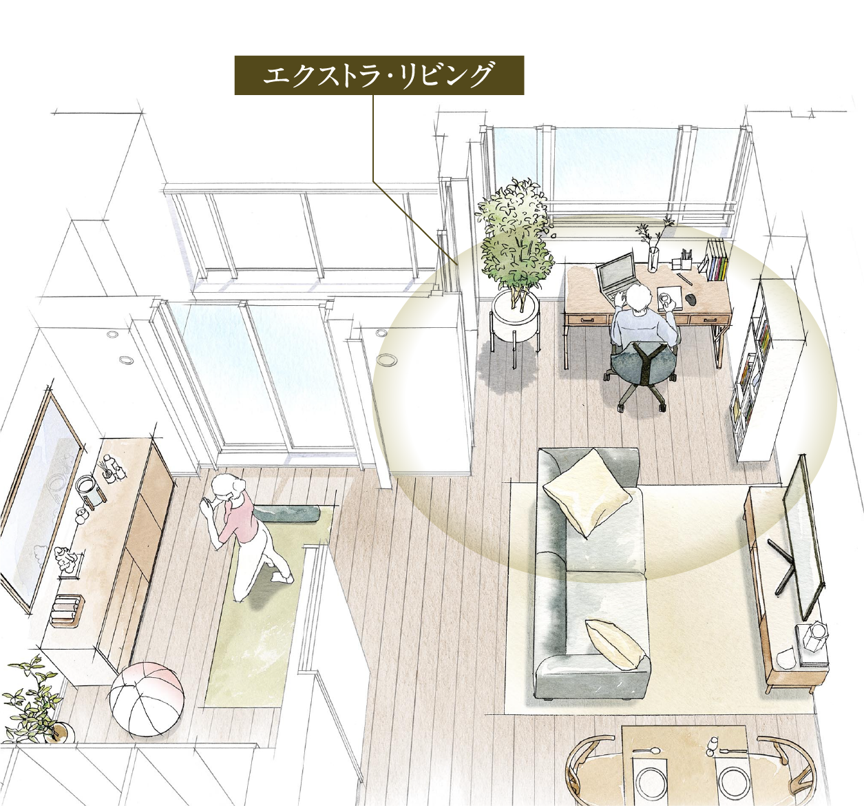 2LDK 58.47㎡~4LDK 80.10㎡まで全12タイプのプランバリエーションをご用意しました。一部住戸に室内物干しができる「ホスクリーン」、お客様の「あったらいいな」をカタチにした長谷工グループオリジナル仕様「U’s+(ユーズプラス)」から、全住戸に「スマートランドリー」を採用しました。キッチンには長谷工コーポレーションとタカラスタンダードが共同開発したリビングの一体感を高める新発想の「フレタスキッチン」を導入しました。さらに一部住戸にはリビングの一角に「エクストラ・リビング」を設け、ワークスペースやキッズスペースなど多目的に活用できます。