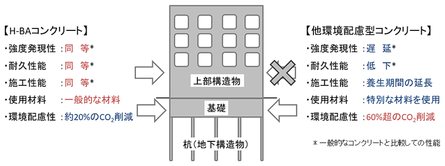 ⑦「H-BAコンクリート」採用でCO2排出量を削減