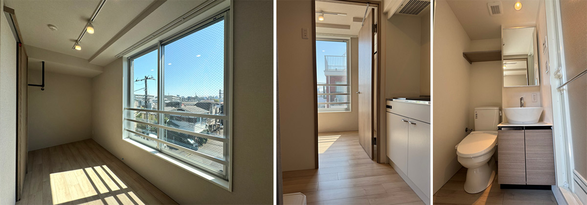 本物件は全戸15.64㎡の1Kで統一し、生活利便性と賃料のバランスを重視し、「賃料を抑えながらも、都心近くに住みたい」と考える単身世帯のニーズに向けて企画された都市型レジデンスです。しかし本物件はコンパクトな専有面積でありながら高機能な住空間を設計しています。またキッチンと居室を分離し、調理・食事とくつろぎの空間を分けることで、快適に過ごせる生活動線に配慮しています。