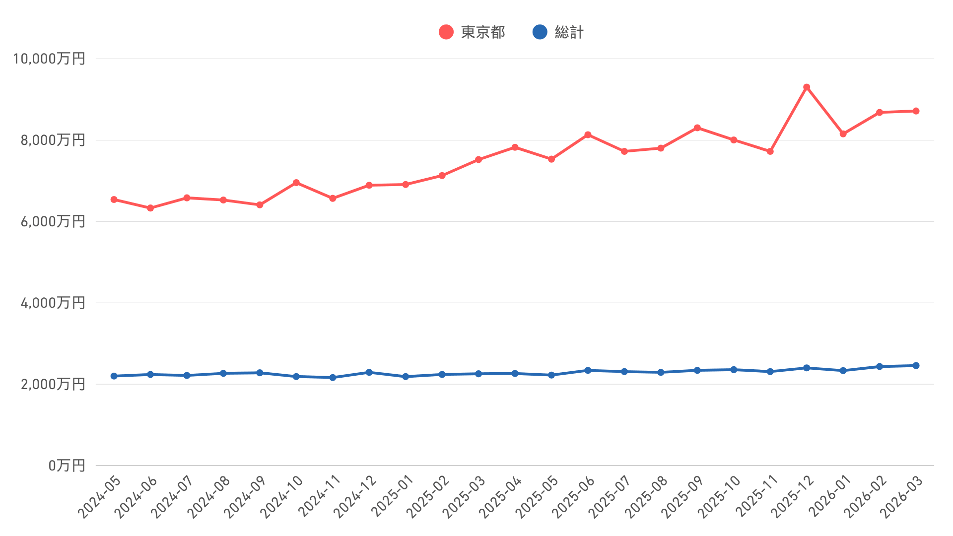 本調査では、東京の急激な価格高騰が全国平均を大きく牽引する一方で、地方では下落傾向が見られるなど、不動産市場における「二極化」が鮮明となった実態を報告いたします。