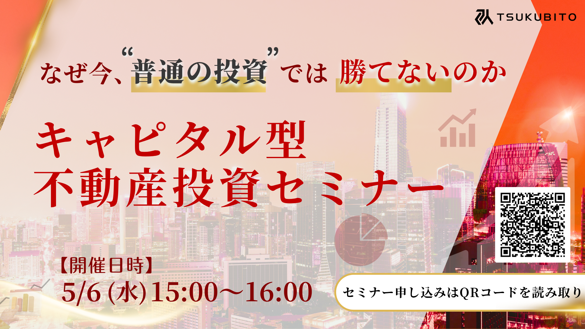 2026年5月5日・6日の2日間にわたり、不動産投資セミナーをオンラインにて開催いたします。民泊投資とキャピタル型投資という異なるアプローチをテーマに、現在の市場環境で「勝てる投資戦略」を解説します。
