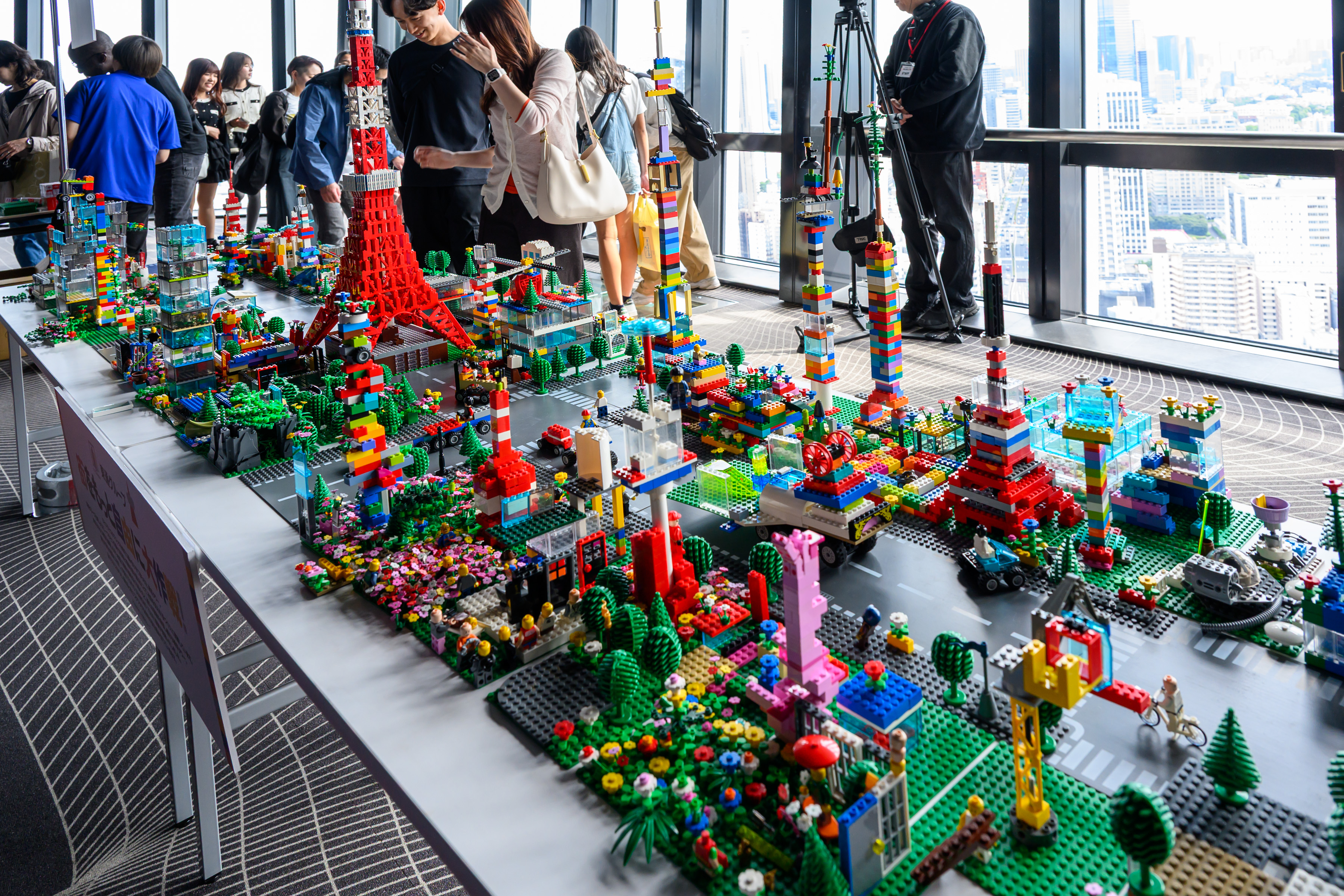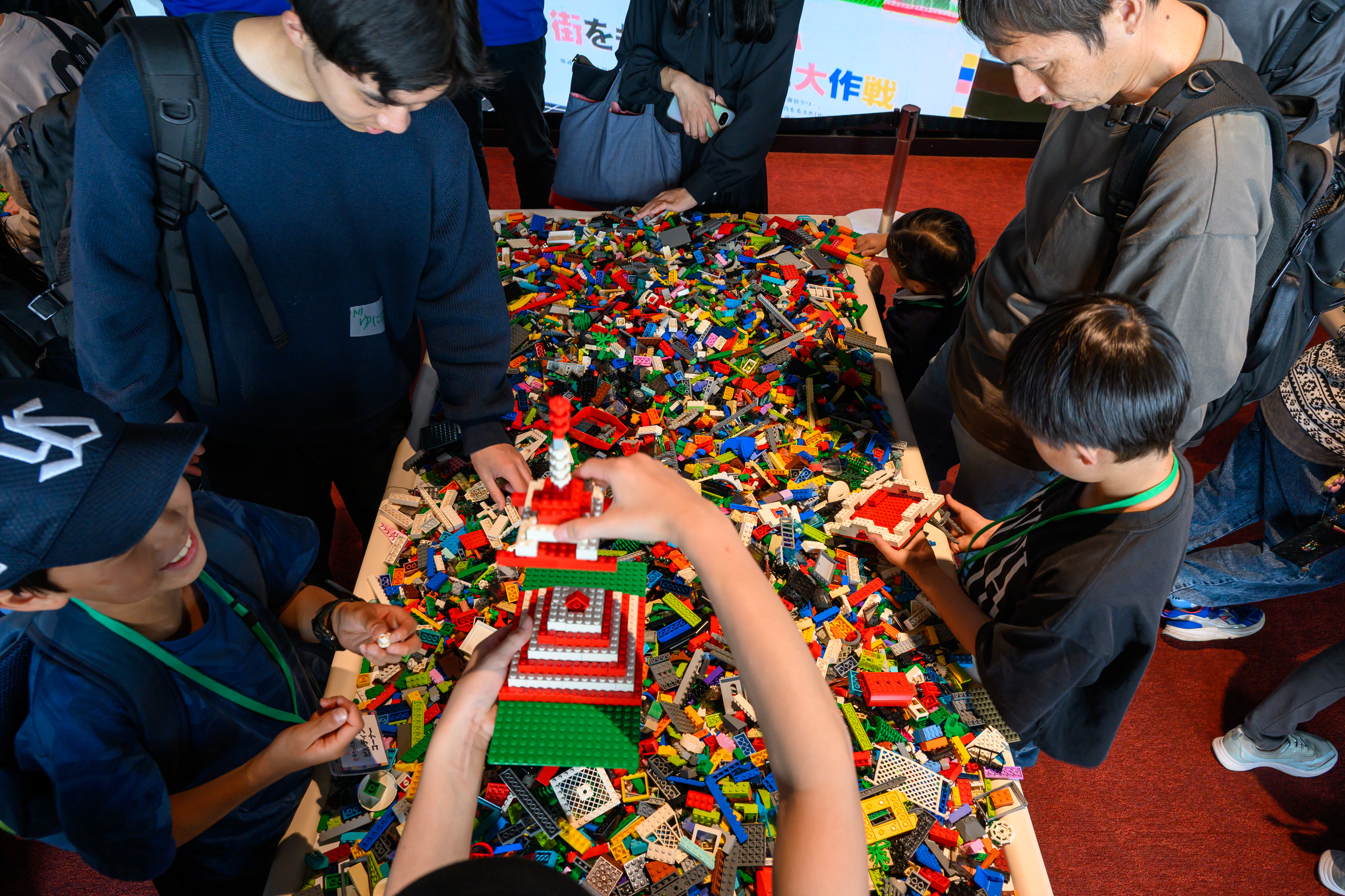 会場内には、当日子どもたちが作り上げた個性豊かな作品を集約する展示コーナーを設置。さらに、その中央にはレゴマスターズ・ジャパン優勝者である東大レゴ部・山口遥(やまぐち はるか)氏が本イベントのために特別制作した、高さ約1mの東京タワーモデル(レゴ®ブロック2525ピース使用)を展示しました。精巧に組み上げた圧巻のモデルは、来場者のフォトスポットとしても大人気に。自分たちの作った「街のパーツ」が、憧れの東京タワーの足元に集まっていく様子を、子どもたちは誇らしげに眺めていました。