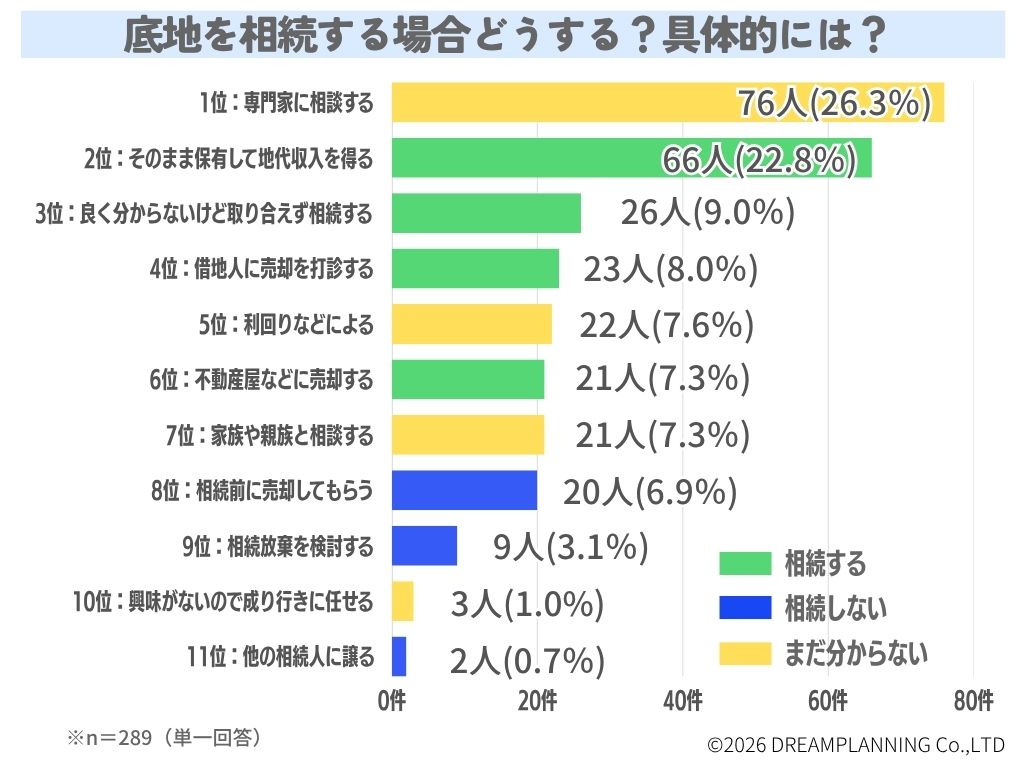 • 2位:そのまま保有して地代収入を得る:66件(22.8%)